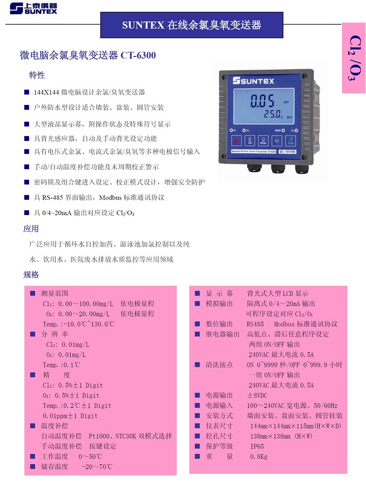 在线余氯变送器CT-6310 [返回]