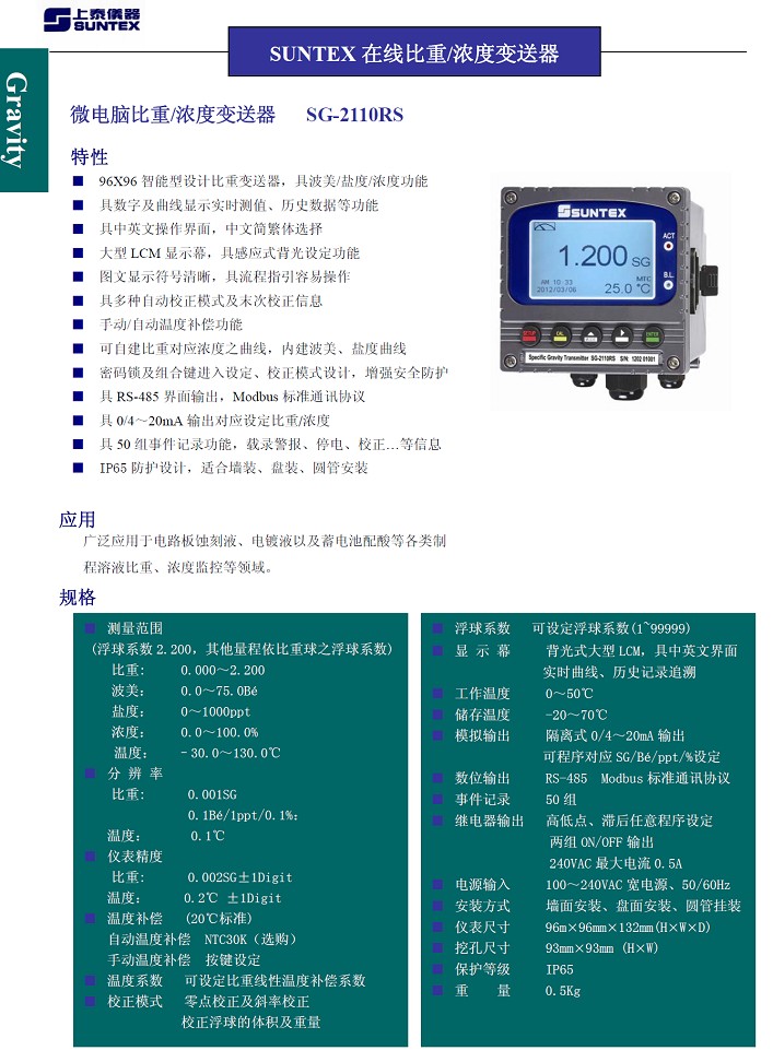 在线比重变送器SG-2110RS [返回]